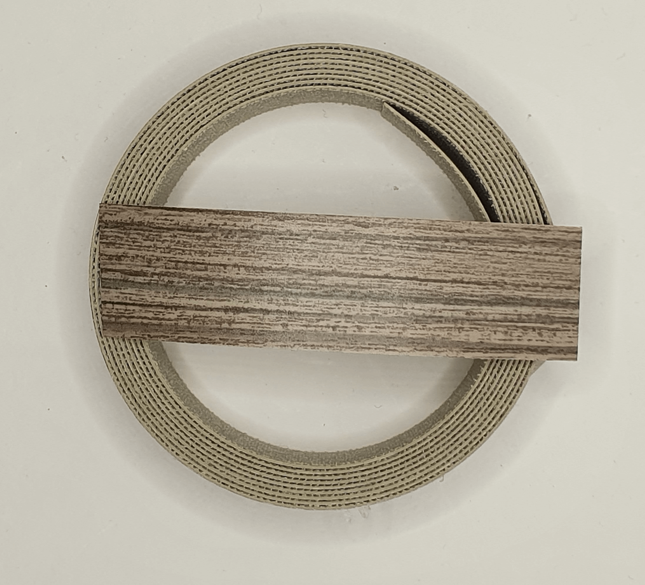 Our “Grey Avola” melamine edging comes pre-glued. Just place it on the exposed edge profile of your sheet material and apply it using a hot iron. Once firmly attached to the surface, let it cool down for few minutes. Now it’s ready for finish. Trim off excess with a sharp knife or with a laminate (available to order) trimmer and smooth down any rough edges with a fine sand block/ sand paper.