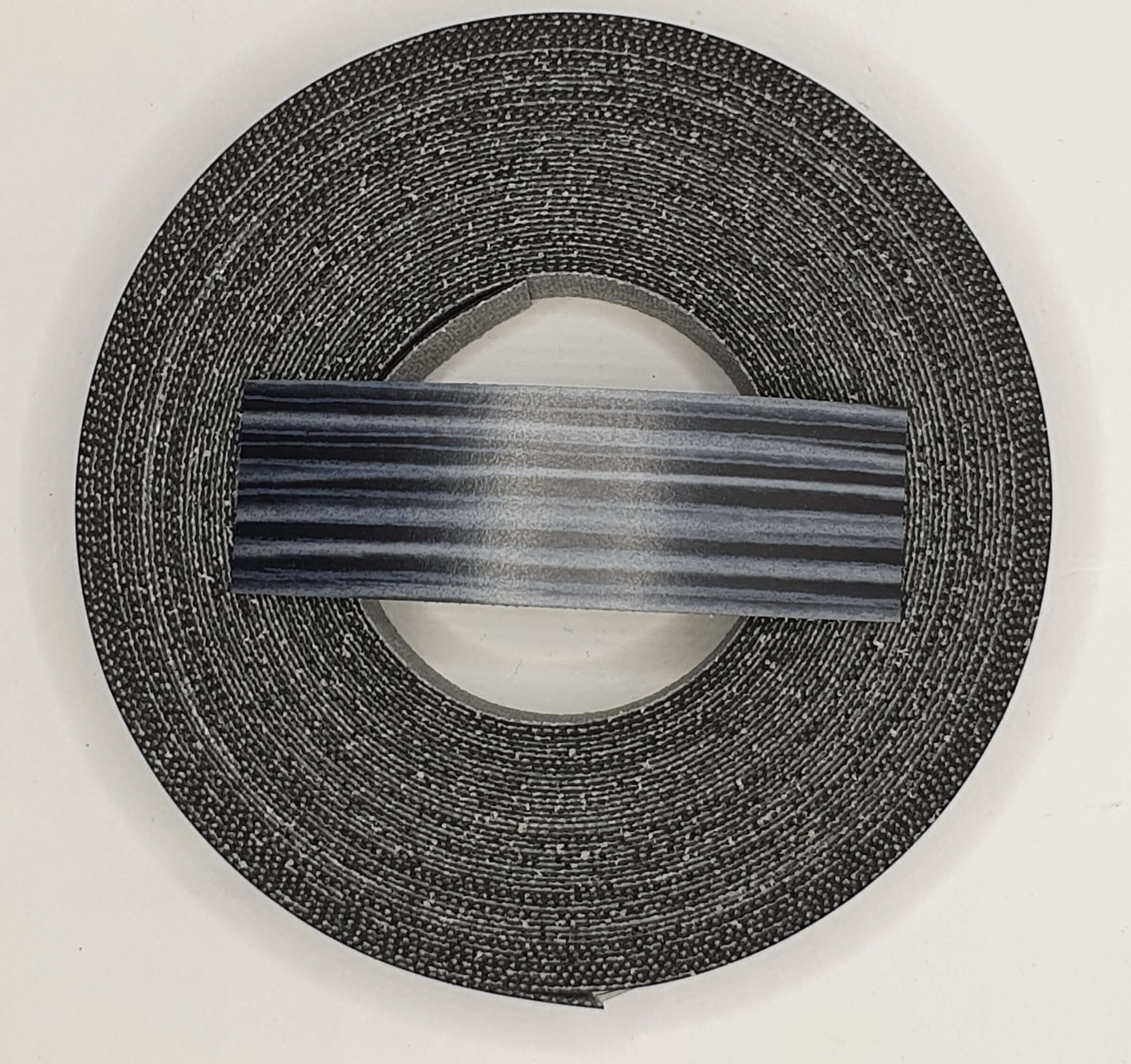 Our “Hacienda Black” melamine edging comes pre-glued. Just place it on the exposed edge profile of your sheet material and apply it using a hot iron. Once firmly attached to the surface, let it cool down for few minutes. Now it’s ready for finish. Trim off excess with a sharp knife or with a laminate (available to order) trimmer and smooth down any rough edges with a fine sand block/ sand paper.